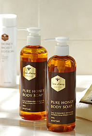 最初に登場したバスシリーズから、まずは「ピュアハニー ボディソープ」(写真1)。完熟アカシア蜂蜜のほか、道産白樺樹液、ヒアルロン酸、コラーゲンを配合。ほんのりアカシア蜂蜜の香りが漂い、心地いい気分に♪