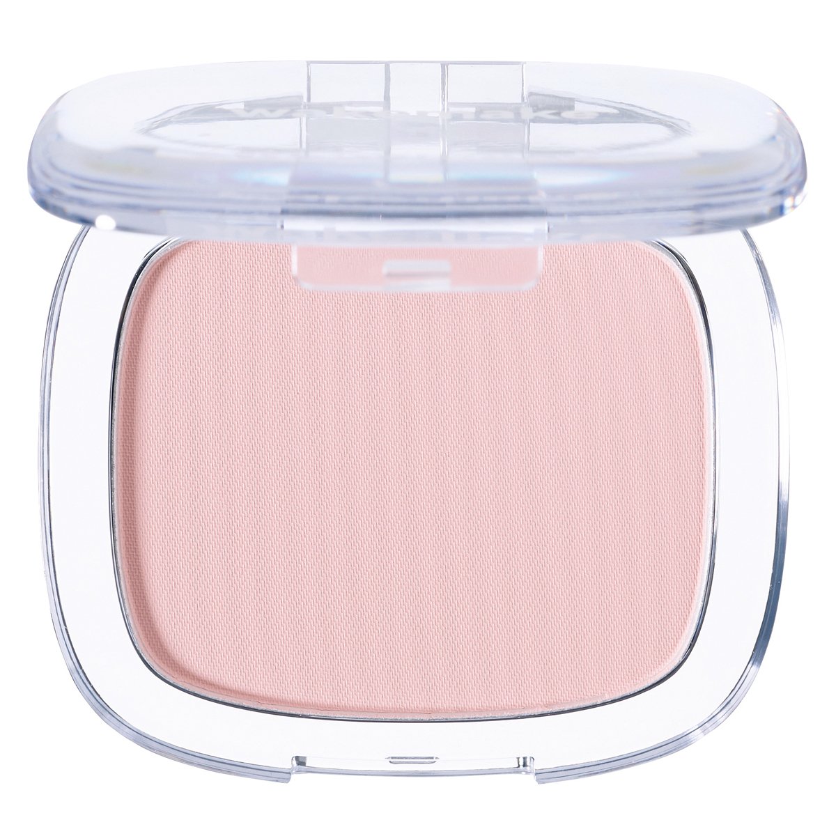 透け感のあるいちごミルクカラーが、程よい血色とツヤを演出。パール入りのきめ細かいパウダーが肌表面の毛穴や凹凸をボカし、ヘルシーオーラをまとった旬顔に仕上げる。