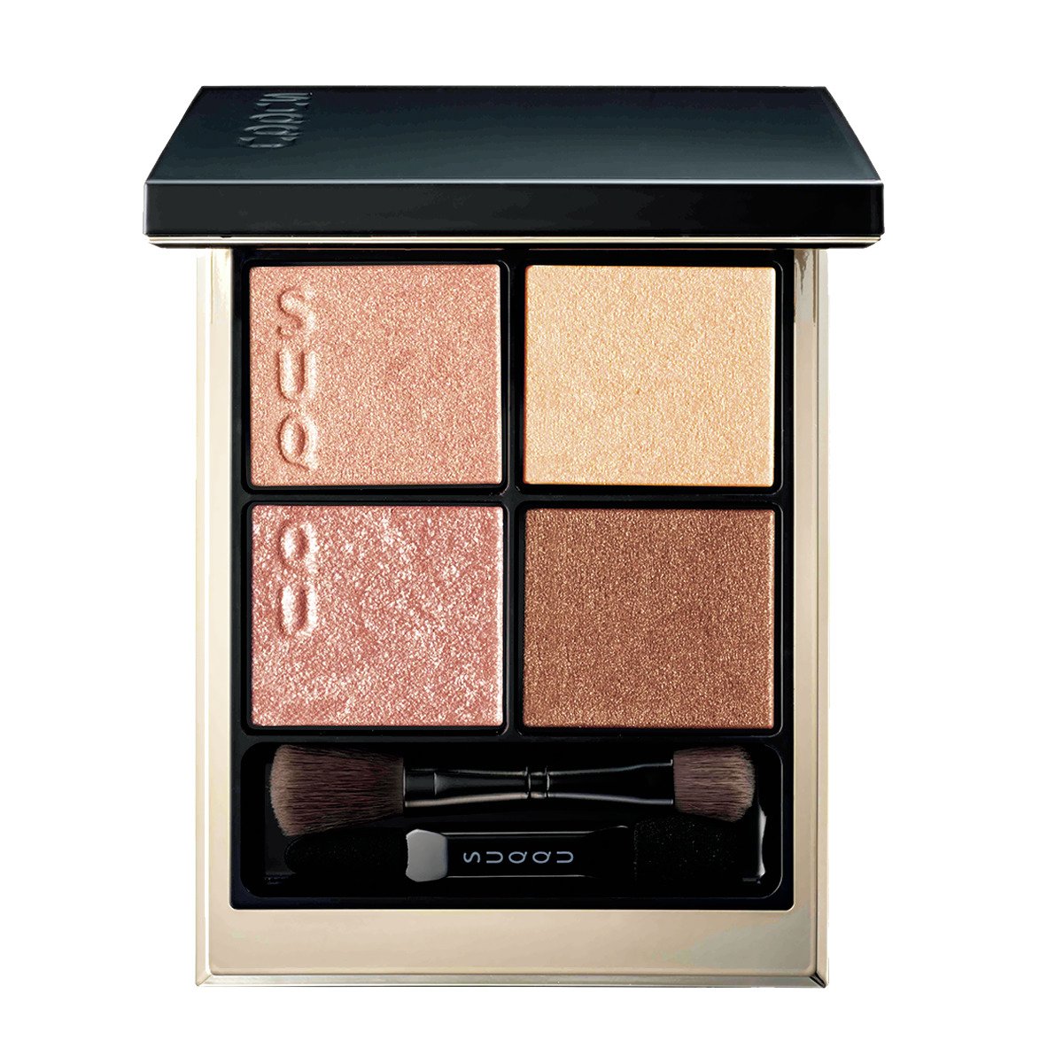 肌と一体化するようになじんで透明度の高いツヤを与えながら、光と影のコントラストを強調して立体感を演出。まぶたの動きに柔軟に対応して、よれやくずれを防ぐ効果も。ベージュ~ブラウンのパレットは定番ながら、絶妙な質感でトレンド感満載と賞賛の声が!