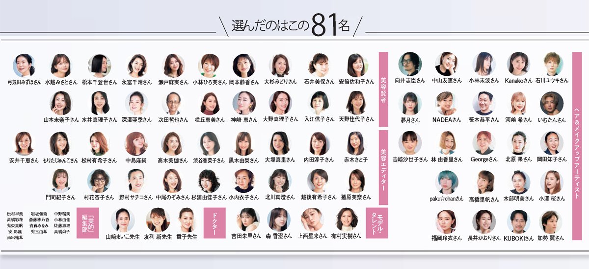 3.部門別ランキングは、ひとり1票として合計順位を決定。1位の製品を選んだ賢者の名前は誌面に、2位以下については「美的.com」に掲載しています。
