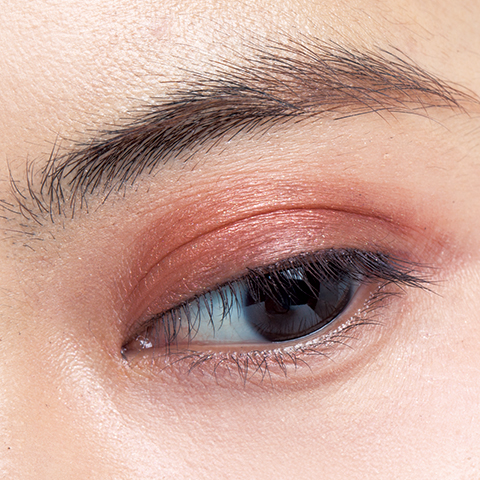 光を反射する大粒のパールを使用し、まばたきをする度に美しいきらめきを放つ。白の顔料を極力抑えたことで、光を濁らせず透明感のあるシアーな発色を実現。やや黄みがかったベージュは自然にまぶたに溶け込み、“オンオフ問わず使える”と軍配が上がった。