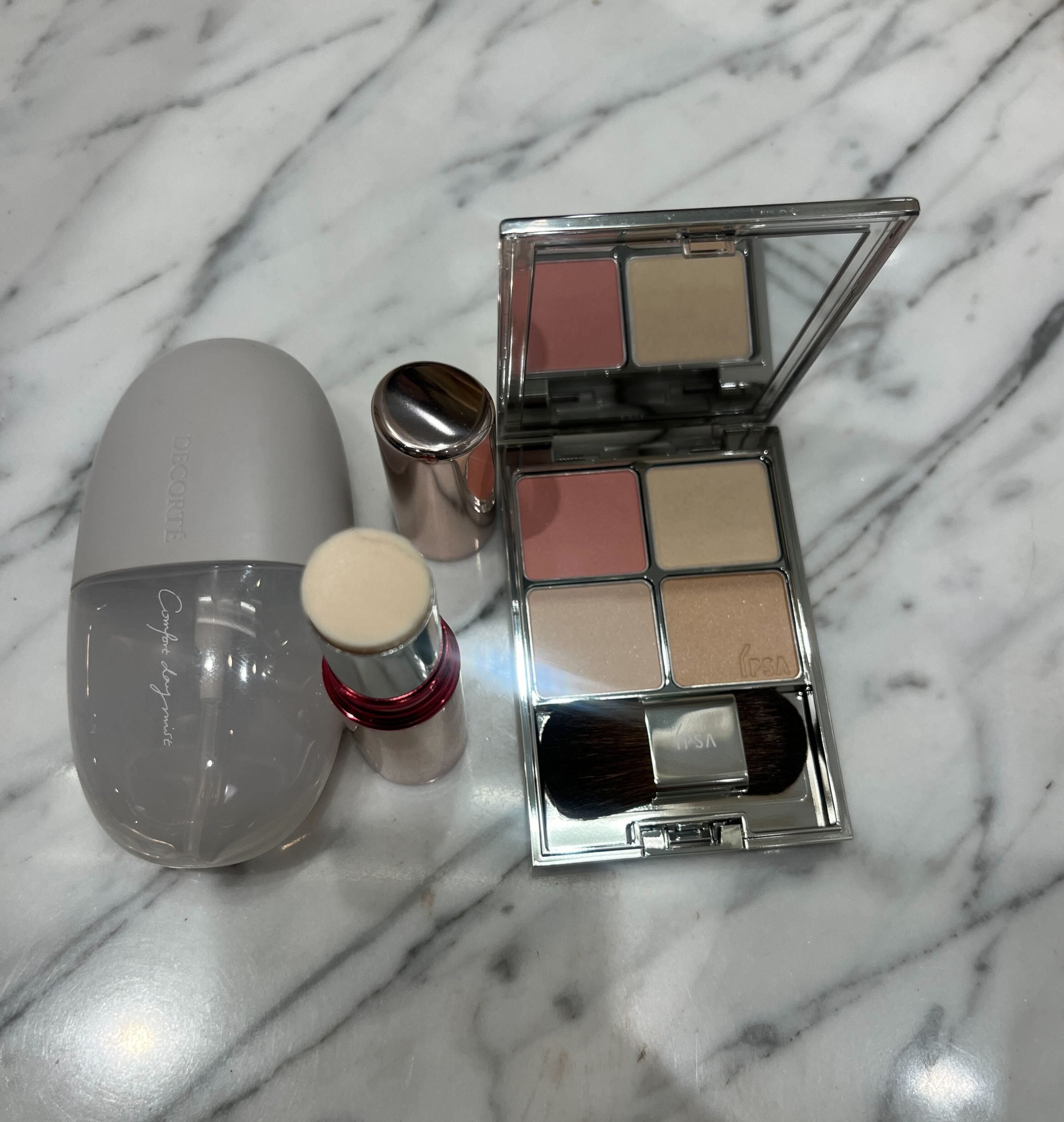 左から:コスメデコルテ・コンフォート デイミスト バランシング モイスチュア アスタリフト・ALE デイエッセンスd イプサ・デザイニング フェイスカラーパレット