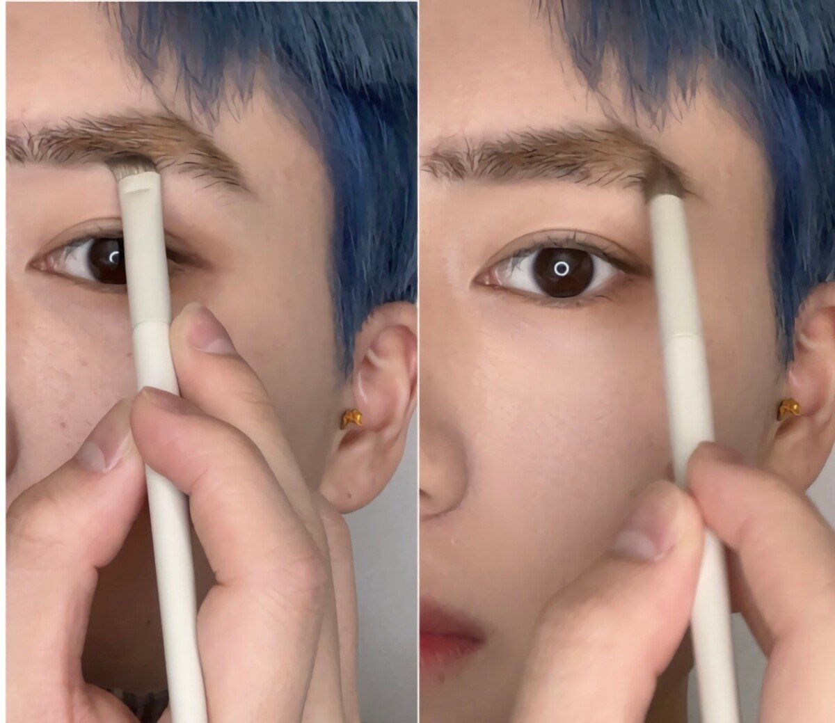 僕はハイライト&シェーディングがメイク工程の中で1番好きです。左がシェーディング、右がハイライトの工程です。