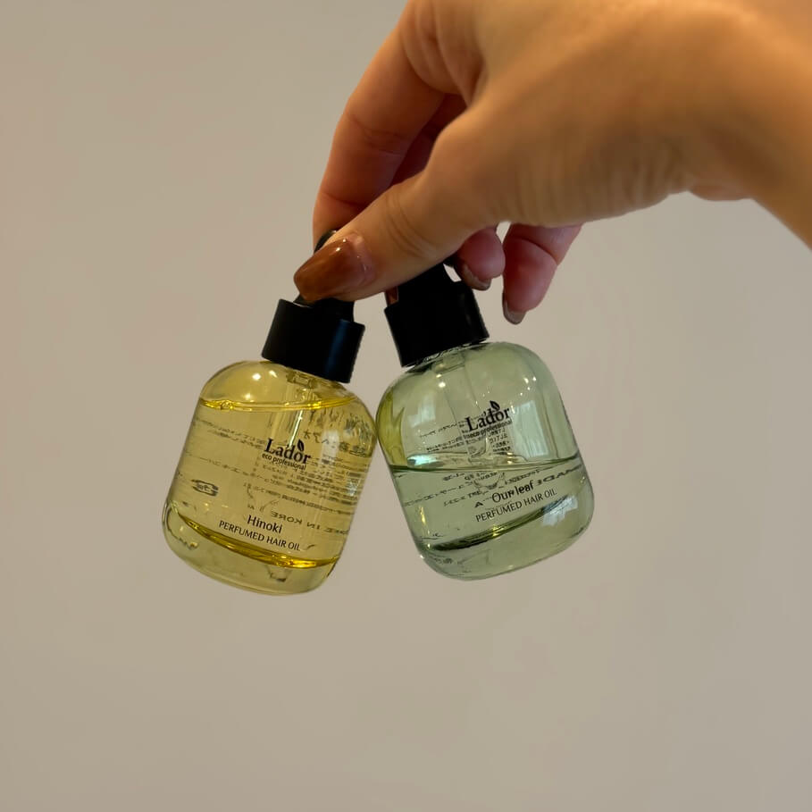 LADOR「パフュームヘアオイル(左:ヒノキの香り 右:アワーリーフの香り)」