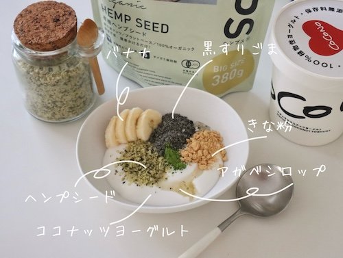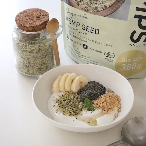 クセがなくナッツのような食感なので和洋中何にでも合わせやすいのが続けられる理由です。最近のお気に入りは、ココナッツヨーグルトにヘンプシード、黒すり胡麻、きな粉、バナナ、アガベシロップ入れた欲張りボウルです。