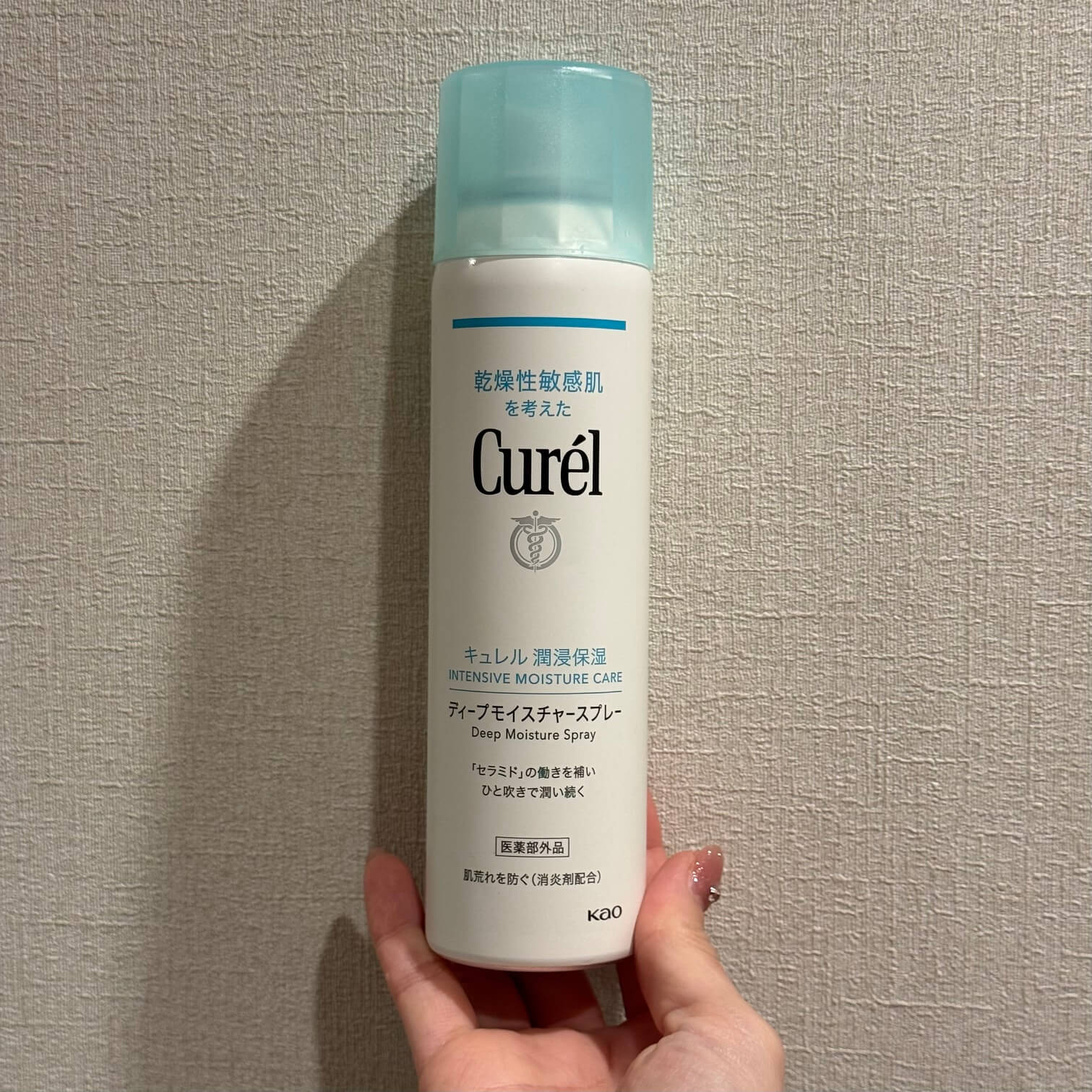 「キュレル 潤浸保湿  ディープモイスチャースプレー。霧状のミストが優しく肌に潤いを与えてくれます」