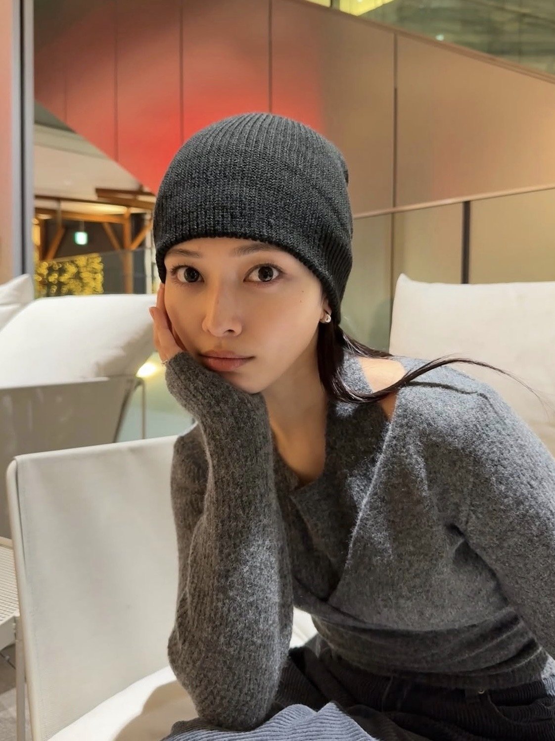 ビーニーを被ると自然と目元に視線が集まり、少し強めの印象になるので、リップはあえてナチュラルなピンクで抜け感を出すようにしています。