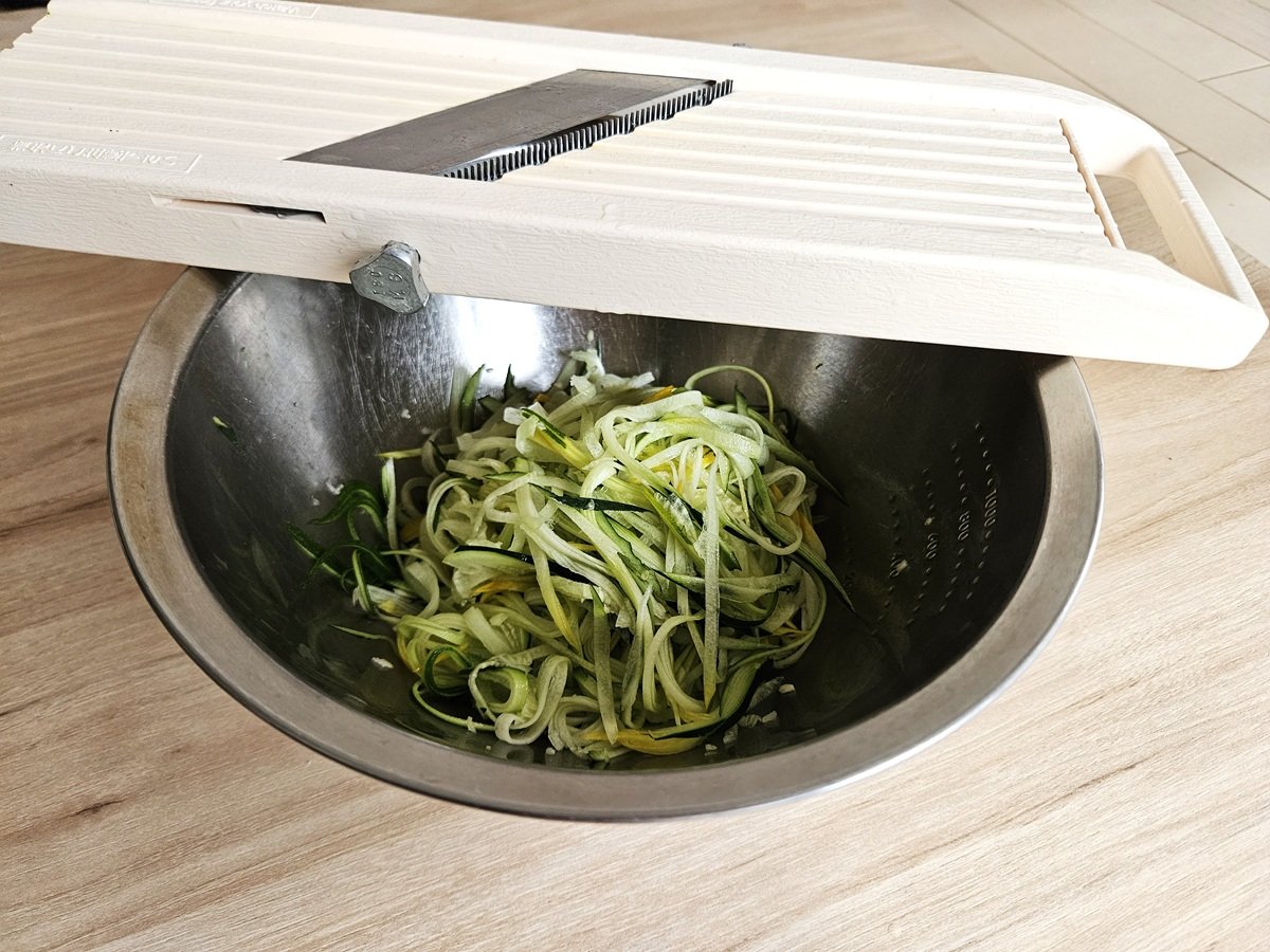 【画像】たんぱく質とビタミン&カリウムで残暑を乗り切る!「ズッキーニそうめん withサラダチキン」【Today’s SALAD #336】