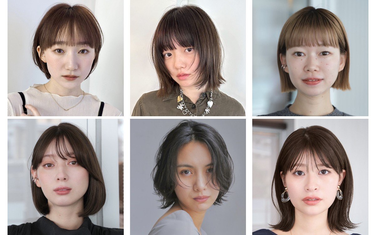 カットベースは鎖骨レングスの切りっぱなしボブ。トップと顔まわりに低めのレイヤーを入れ、なじむように薄く整えます。目力UPを狙えるよう前髪は目上ギリギリで薄めにカット。サイドバングは目尻の長さでワイドに。