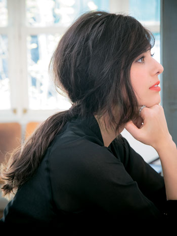 襟足から3cm下くらいの位置で結び、ローポニーテールにする。結び目はきゅっと、バックとサイドはふわっとが理想の形です。
