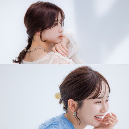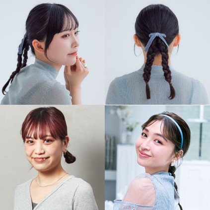 髪が溜まりがちなハチ周りをスッキリさせて清潔感を引き出すハーフアップは、『美的』世代の定番アレンジ。今回はハーフアップとカチモリを組み合わせ、トレンドを盛り込みました。