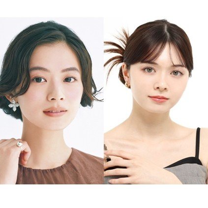 顔周りともみあげの毛を残し、ハチラインより上の髪をハーフアップにして毛先を引き抜かない輪結びにする。ハチラインより下は、上の結び目と近い高い位置で同じような輪結びに。襟足のみつかど(襟足の両端のいちばん下がった部分)の毛束を引き出し、後れ毛にする。
