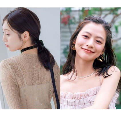 髪が溜まりがちなハチ周りをスッキリさせて清潔感を引き出すハーフアップは、『美的』世代の定番アレンジ。ハーフアップとカチモリを組み合わせ、トレンドを盛り込みました。