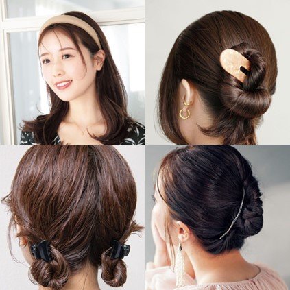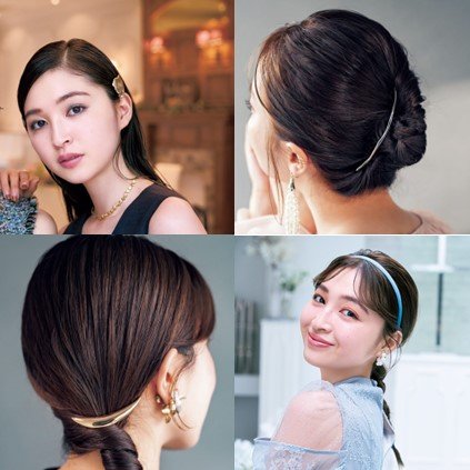 いつものアレンジをお呼ばれスタイルに変身させるには、存在感のあるヘアアクセでちょい盛り。