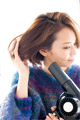 ドライヤーで襟足から、下から上に風を入れ、自然にふわっとさせる。サイドの髪は耳にかけ、耳前に少し髪を垂らして完成。