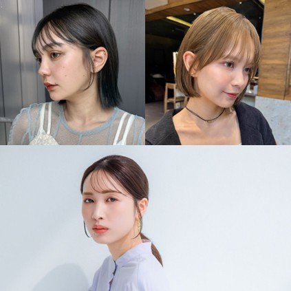 カットベースは鎖骨レングスの切りっぱなしボブ。トップと顔まわりに低めのレイヤーを入れ、なじむように薄く整えます。目力UPを狙えるよう前髪は目上ギリギリで薄めにカット。サイドバングは目尻の長さでワイドに。