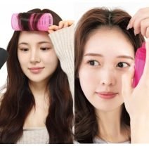 - 程よく束感が出るシアバターのスタリング剤を毛先を中心に揉み込む。毛先を軽く散らし表面をふわっとさせるとかわいらしい印象に。前髪は軽く内巻きのクセがついたらカーラーを外し、毛先をサイドに流したら完成。