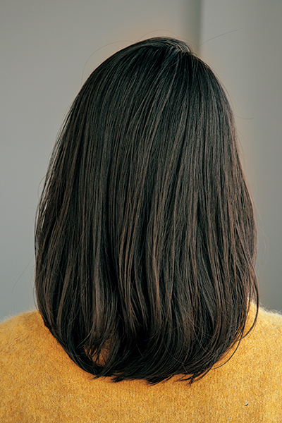 - バックは外ハネのみでも。スタイリング剤は、ボリュームが出にくい人はシアバター、広がりやすい人はシアバター+オイルを。毛先から持ち上げるようにつけてカールをキープさせる。
