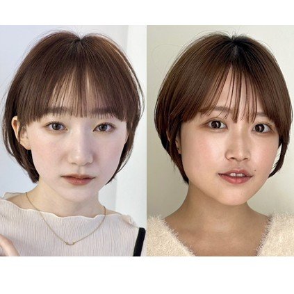 こちらのショートボブは、シースルーバングで、縦長を強調し、丸顔をカバー。さらに、前髪をワイドにつくり、サイドバングに繋げているので、面長さんの補正もできる優秀デザインです。