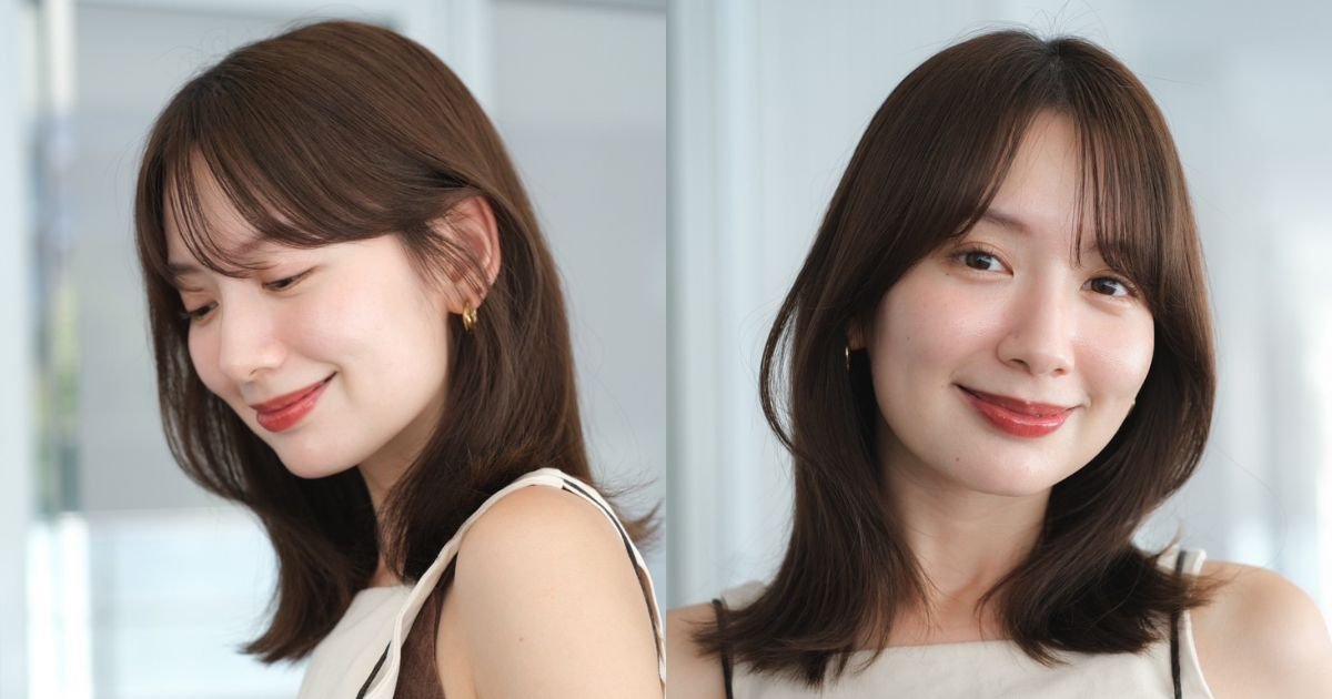 大人のナチュラルヘアに!ふんわり軽やかな透け感バングの華やかミディ|最旬ヘアカタログ