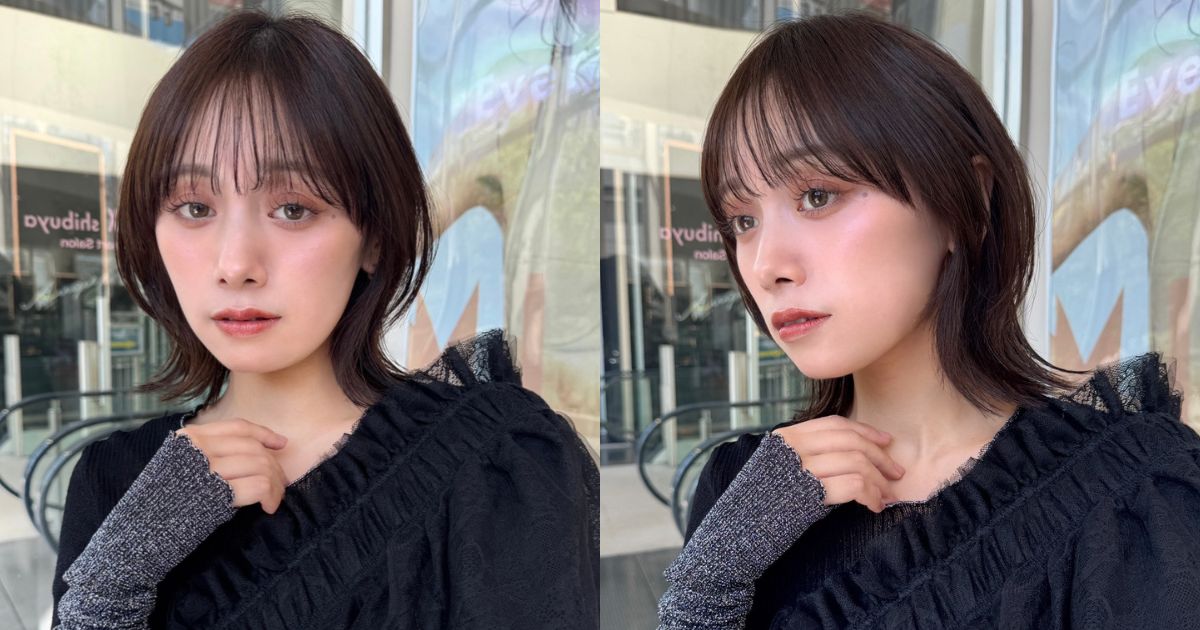 ベースを肩ラインでカットし、顔まわりに骨格に合わせたレイヤーを入れ、軽やかな動きを出しやすくします。前髪は長めのシースルーバングをややラウンド状に。