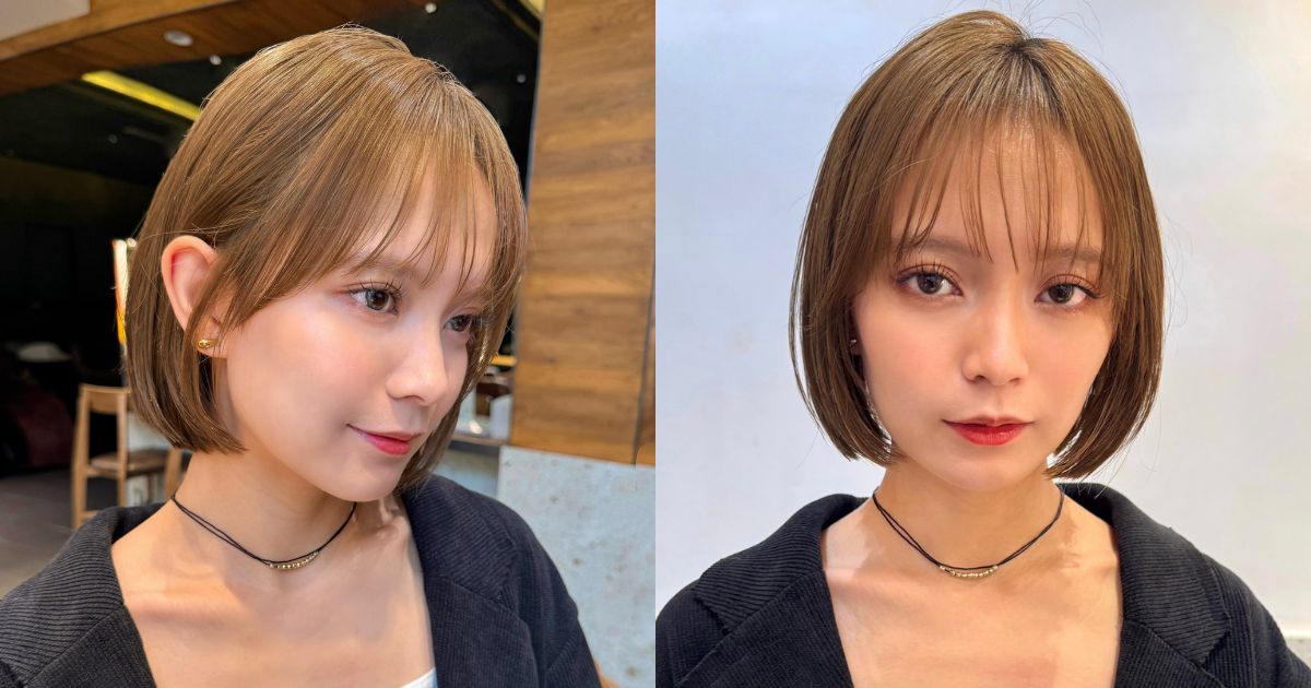 ナチュラルな丸みと透け感バングがかわいいコンパクトボブをご紹介します。首元すっきり&小顔見せも叶えられる美人ヘアです。