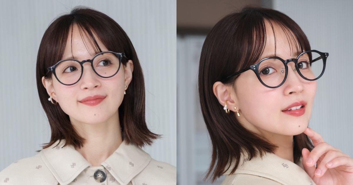 丸顔さんにも!眼鏡映えする上品カラーの肩ハネボブ|最旬ヘアカタログ