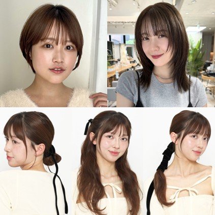 仕上げではブローでも、ストレートアイロンでも、カールアイロンでもお好みで。大人かわいくするならおくれ毛にカールをつけ、キレイめにするならかき上げバングに。ツヤ感とまとまり感が鍵になるので、髪質に合わせてスタイリングを。