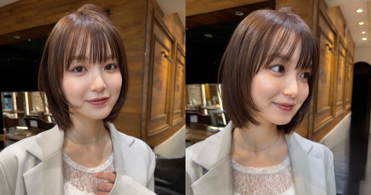 骨格補正ができ、特に丸顔さんと面長さんにおすすめなボブ。シースルーバングは、スタイリングでサイドに広げ、抜け感を出すのがポイント。アイロンを軽く通せば決まるので、朝の支度をさっと済ませたい人にも◯。
