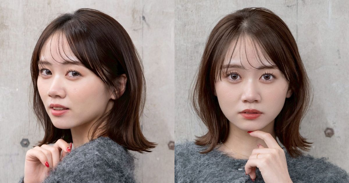 ヘアカラーはツヤ感重視の深みブラウンがベストマッチ。乾燥が気になる季節でもパサついて見えず美髪印象に。明るめカラーからのトーンダウンにもぴったり。縦長印象で丸顔カバーを叶え、ボブでも甘すぎないのが高ポイントです。