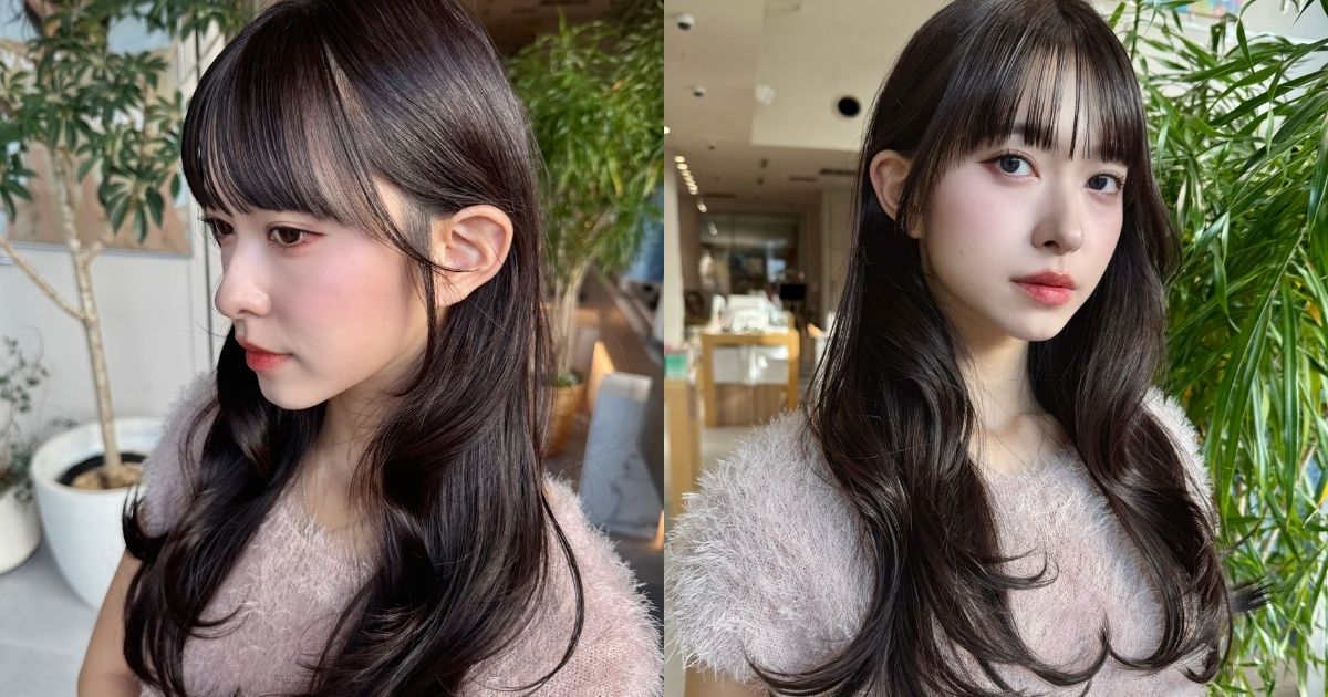 顔まわりのこだわりが詰まったこちらのロングヘア。目尻に沿うサイドバングや短めのもみ上げが、結んだときのニュアンスになり、顔を小さく見せる効果も。また、前髪のトレンドはやや厚め移行中とか。ほんのりライン感があることで目元印象を高めて可愛さもUP