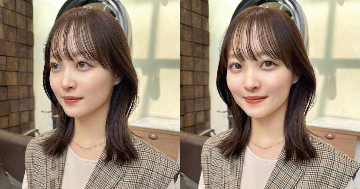 顔まわりレイヤーとシースルーバングで春らしく軽やかな印象のミディアムヘアをご紹介します。ナチュラルな女性らしさが魅力で、カジュアルにもきれいめなファッションにも合わせやすいデザインです。