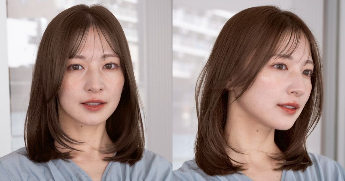 ヘアカラーは人気のグレージュですが、春は明るめにすることで重くならずより柔らかい質感を演出します。前髪はシースルーでサイドバングを重めに残すのが今の気分。顔の輪郭をきれいに見せられ、大人っぽいきれいめ印象を叶えます。