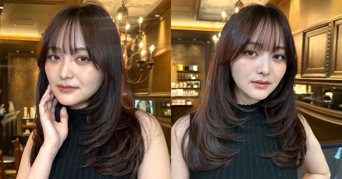 前髪は再現性の高さと持ちのよさを兼ね備えたベストな長さのシースルーに。顔を包み込むような髪の動きでフェイスラインをシャープに見せられ、求心顔さんにも◯。