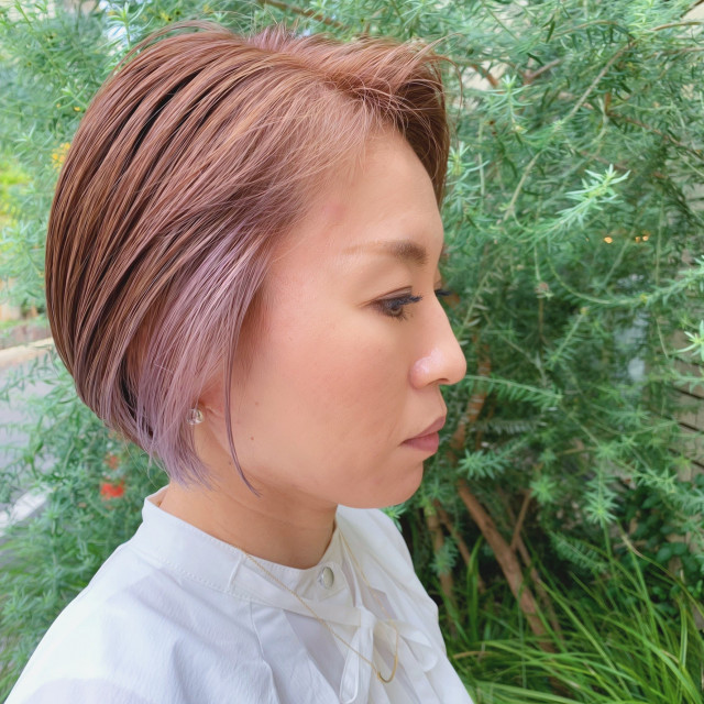 カラーは9トーンのピンクグレージュ。白髪もぼかせるし、艶とピンクで可愛らしさがぷらすされます。グレージュとミックスすることで、ピンクの派手さは消されるので、大人でもおすすめのカラーです。