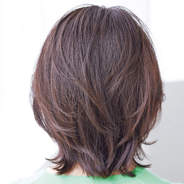 カジュアルなら外ハネ、キレイめなら内巻き、こなれ感のあるスタイルならMIX巻き、結べる長さもあるので多彩なアレンジを楽しめるこちらのミディ。顔まわりを中心にトレンドのレイヤーを入れているので、ふんわり女性らしい柔らかな表情がつくりやすくなります。
