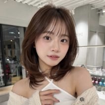 鎖骨ラインのミディアムをベースに、たっぷりとレイヤーを入れます。毛先だけ内巻きにすることで個性を感じるウルフ風スタイルに!幅を狭く、サイドを斜めにつながるようにカットした前髪で、フェースラインを隠し、女性らしい印象に。