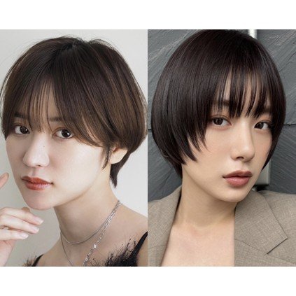 短い前髪がフレンチガール風な味つけ。フェースラインも上手にカバー。