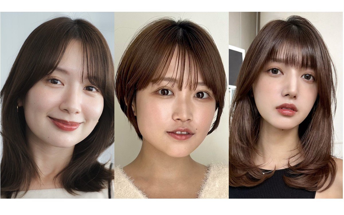 ワイドバングにすることでこめかみ付近の顔の余白を埋められ、特に面長さんをカバーして小顔見せを叶えます。また、前髪の長さは少し短め。目元がぱっちり見えて目力UPにも。