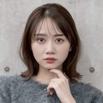 カットベースは肩につくくらいのワンレングスボブ。レイヤー無しにすることで、丸みシルエットにならず、大人っぽすぎない印象に。前髪は目の上の長さに設定し、おでこが隠れる程度の厚みにカットします。顔まわりは自然にラウンドさせ、骨格カバーと耳かけや結んだときのニュアンスをプラス。量感は重くならないよう軽めのサラっとした質感に調整します。