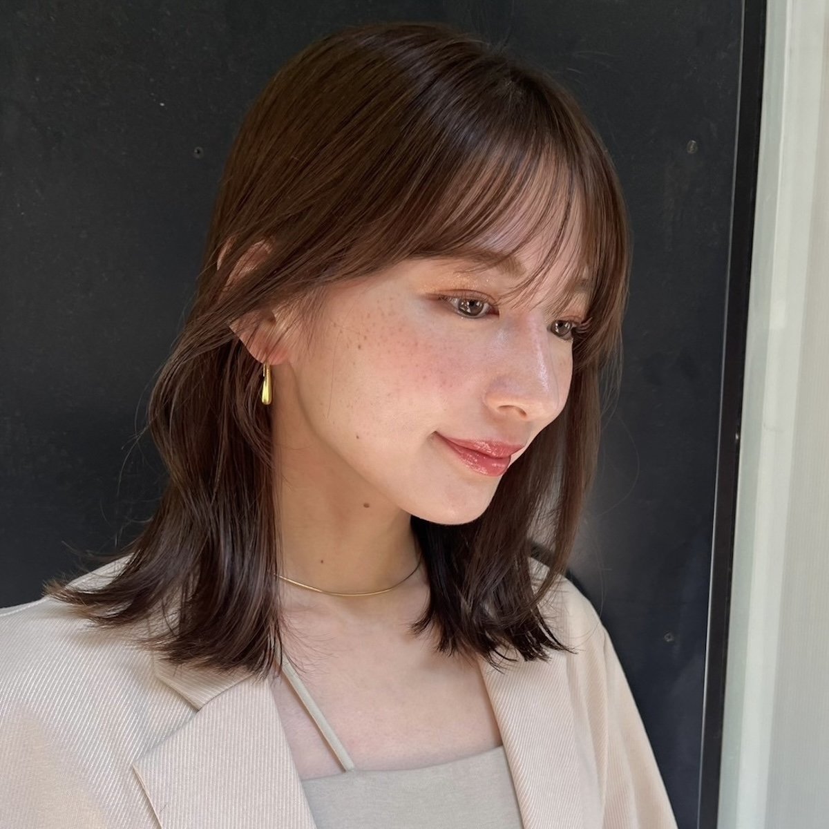 【4】清潔感抜群!2WAYバングを合わせた大人の柔らかレイヤーミディ