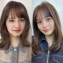 王道のワンレングスから、イメージチェンジを狙うならパーマヘアにチャレンジを。ベースは重めに内巻きでスタイリッシュさをキープしながら、顔まわりに外ハネのニュアンスがプラスされることで、柔らかい女らしさと抜け感のあるスタイルになります。また、前髪の透け感が一気に今年顔をつくり、おしゃれ感のあるヘアに。