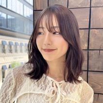 あご下3cmのワンレングスベースに、スタイリングしやすいようにレイヤーを少しだけ入れます。前髪はワイドでかつ、シースルーにすることでラフな質感をつくり今っぽい仕上がりに。カラーは透明感のあるフォギーベージュに。赤みを抑えたいけど、アッシュやマットがイマイチ似合わないという人におすすめ。7レベルでカラーリングすれば、プリンにもなりにくい!