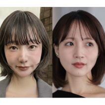 - 顔まわりの髪を残して小顔効果と骨格カバー