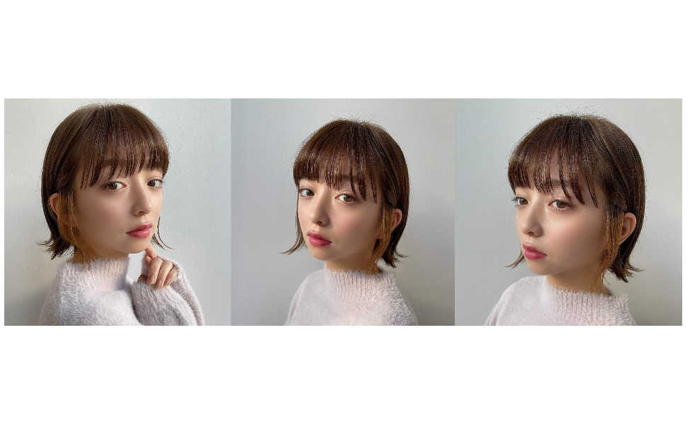 このようなワイドバングには外はねでクールな印象にしてあげるとギャップが出て◎。イヤリングカラーもきれいに見えるのでおすすめです。スタイリング剤はオイルでウエット感を出してあげて毛先を中心に塗布しましょう。