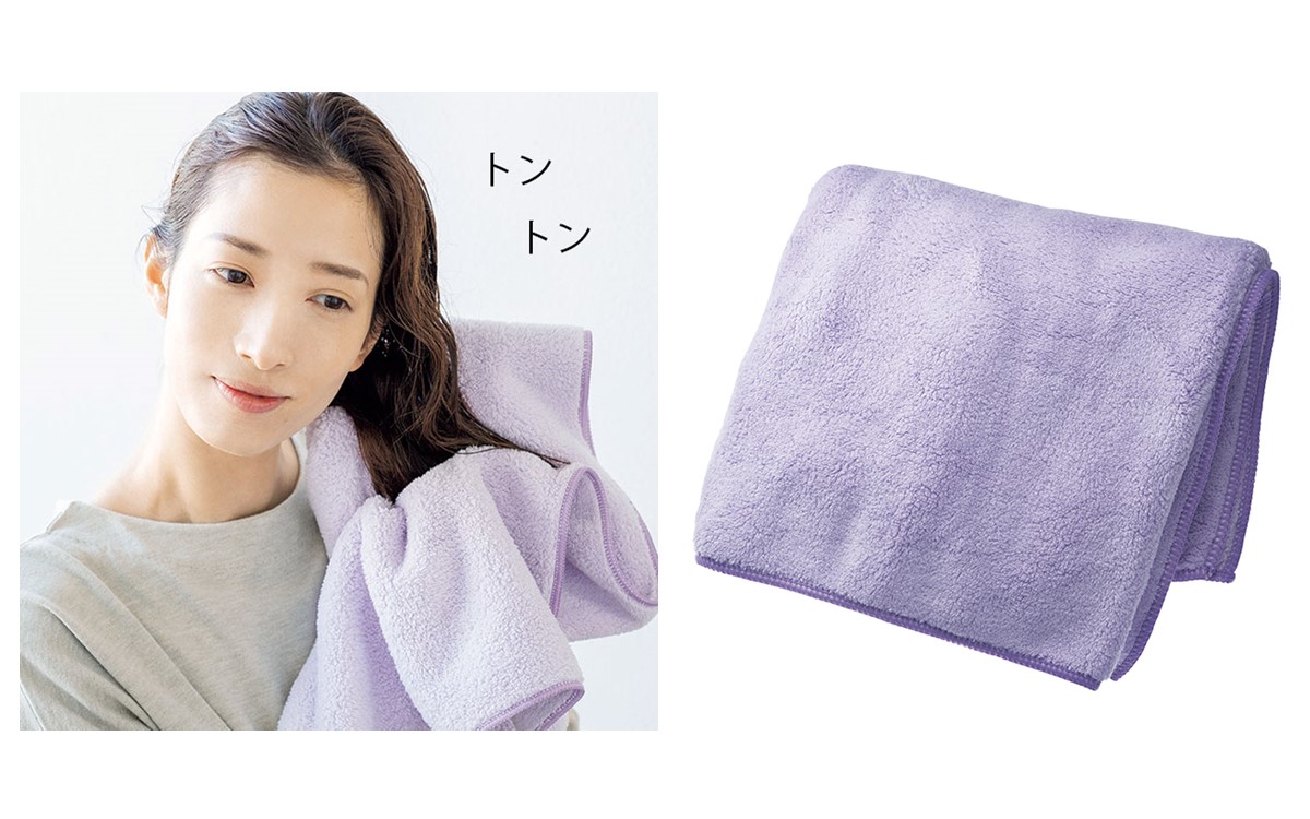 吸水性の高いタオルを使用。頭皮を拭いてから、髪はタオルで挟んでしっかり水気をオフ。これで確実に、ドライ時間が3分短くなる。