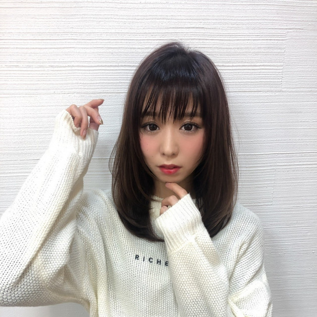 - 前髪幅はやや広めだが厚みは少なくして透け感を