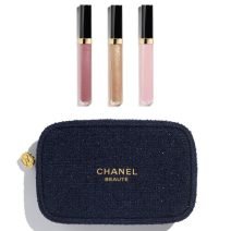シャネルの人気リップグロス3色がセットに。119はピュアな発色のくすみがかったローズカラー、712は柔らかいキャラメルカラー、726はコントラストが強い青みピン…