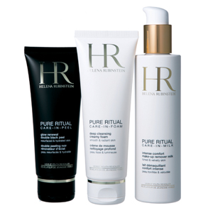 ピュア リチュアル(右)ケア イン ミルク クレンザー (中)ケア イン フォーミング クレンザー (左)ブラック ピール スクラブ