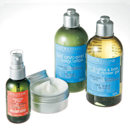 (右)プロヴァンスアロマ リラクシング シャワージェル(中右)プロヴァンスアロマ リラクシング ボディミルク(中左)プロヴァンスアロマ リラクシング ハンドバーム(数量限定)(左)ファイブハーブス リペアリングミスト(数量限定)